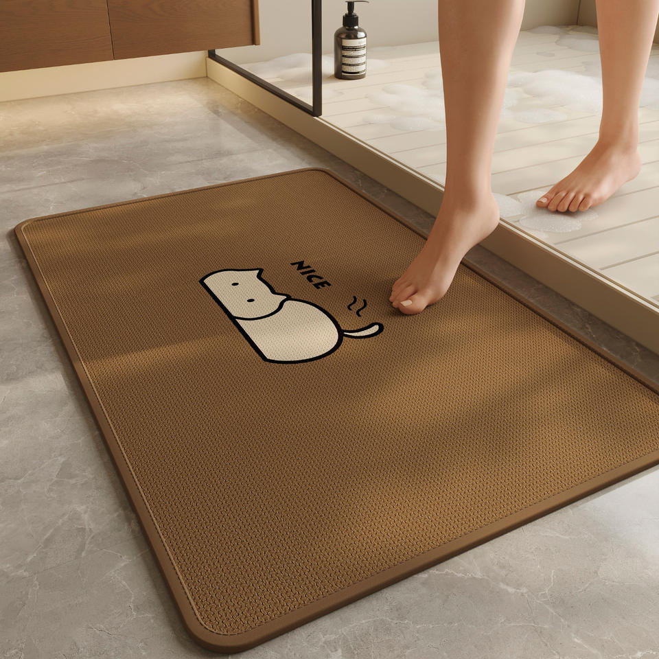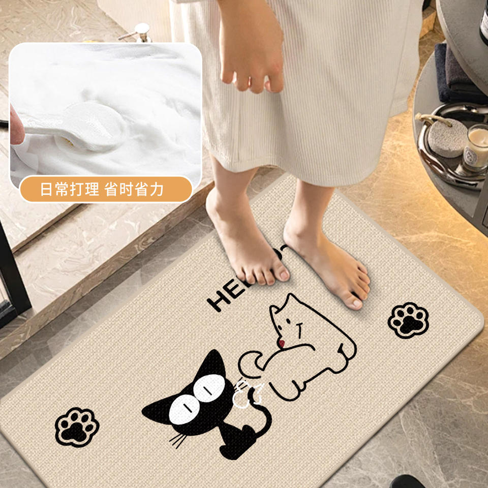 พรมเช็ดเท้าลายการ์ตูนน่ารัก รูปทรงสี่เหลี่ยมผืนผ้า ผ้าลินินเทียม ดูดซับน้ำได้ดี กันลื่น สำหรับทางเข้าห้องน้ำ ลายแมวและสุนัข สีขาวงาช้าง