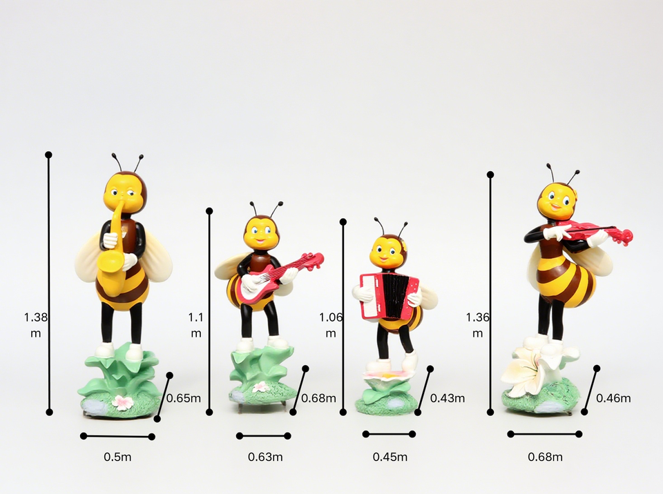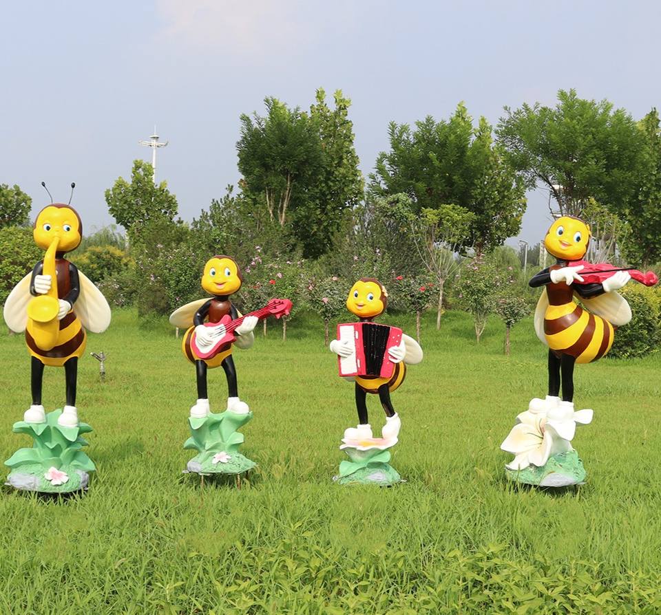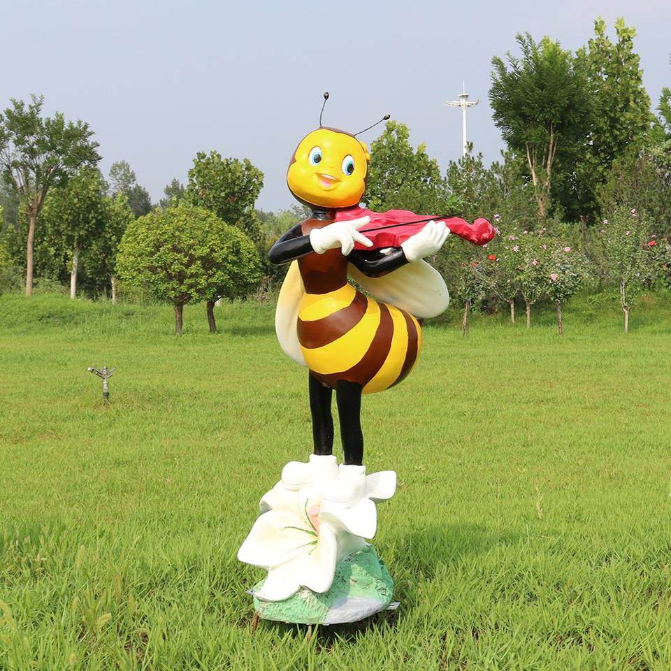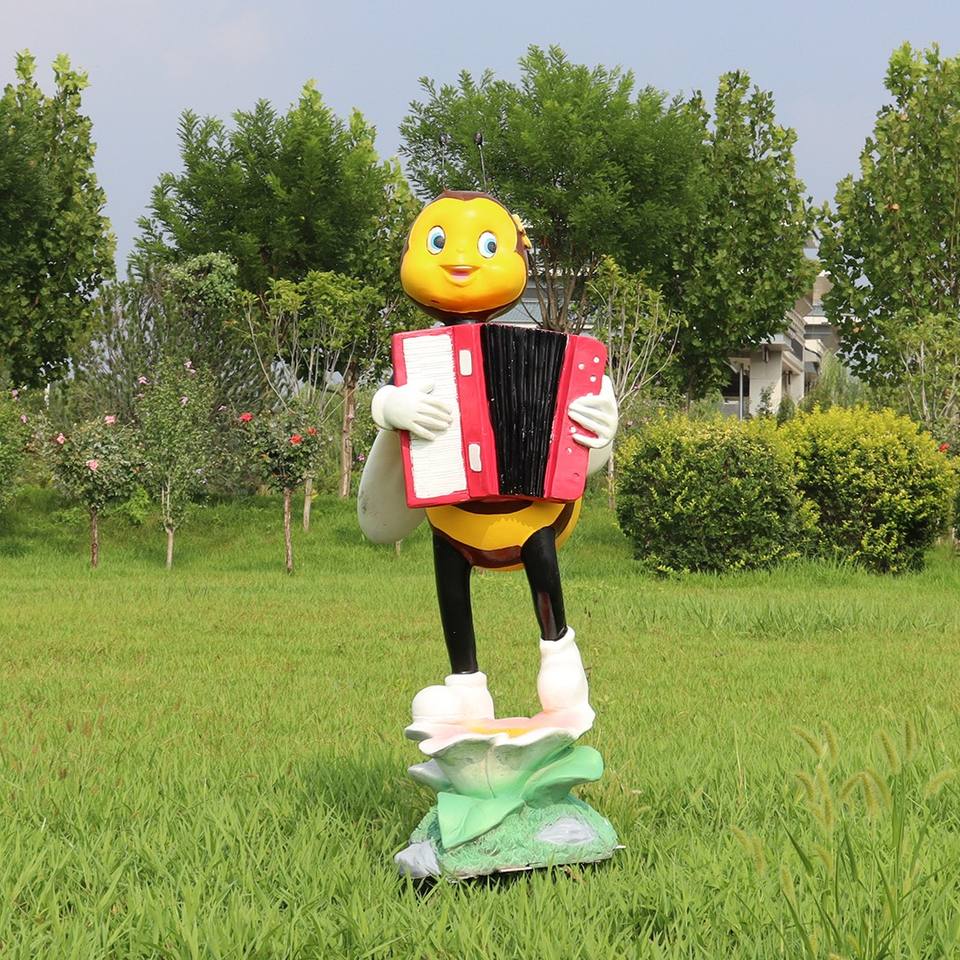 เครื่องประดับตกแต่งสวนรูปการ์ตูนผึ้งรูปปั้นตกแต่งสวนกลางแจ้งเครื่องดนตรีแบบถือ