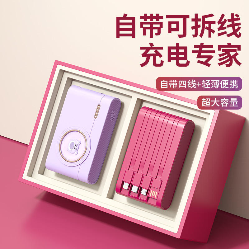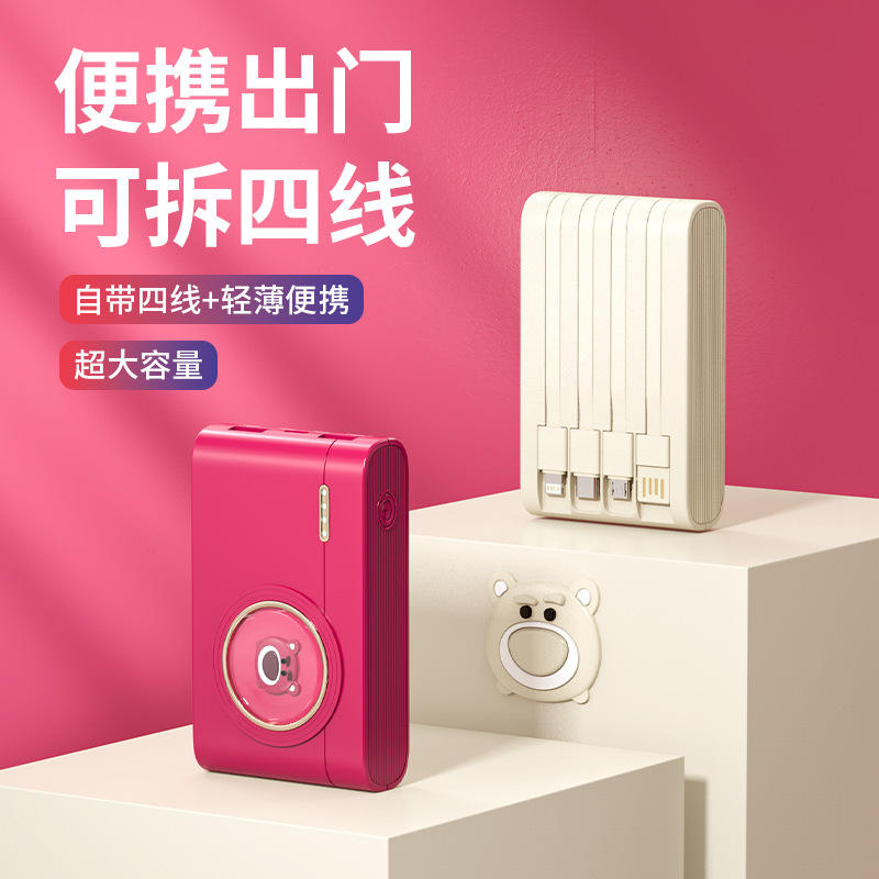 เครื่องชาร์จพกพาแบบกล้องการ์ตูนน่ารัก ความจุ 10000mAh พาวเวอร์แบงค์พกพาขนาดใหญ่ พร้อมสายชาร์จในตัว