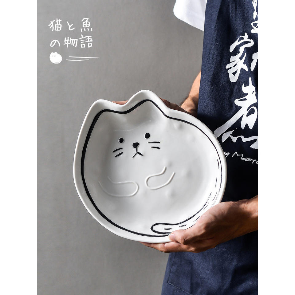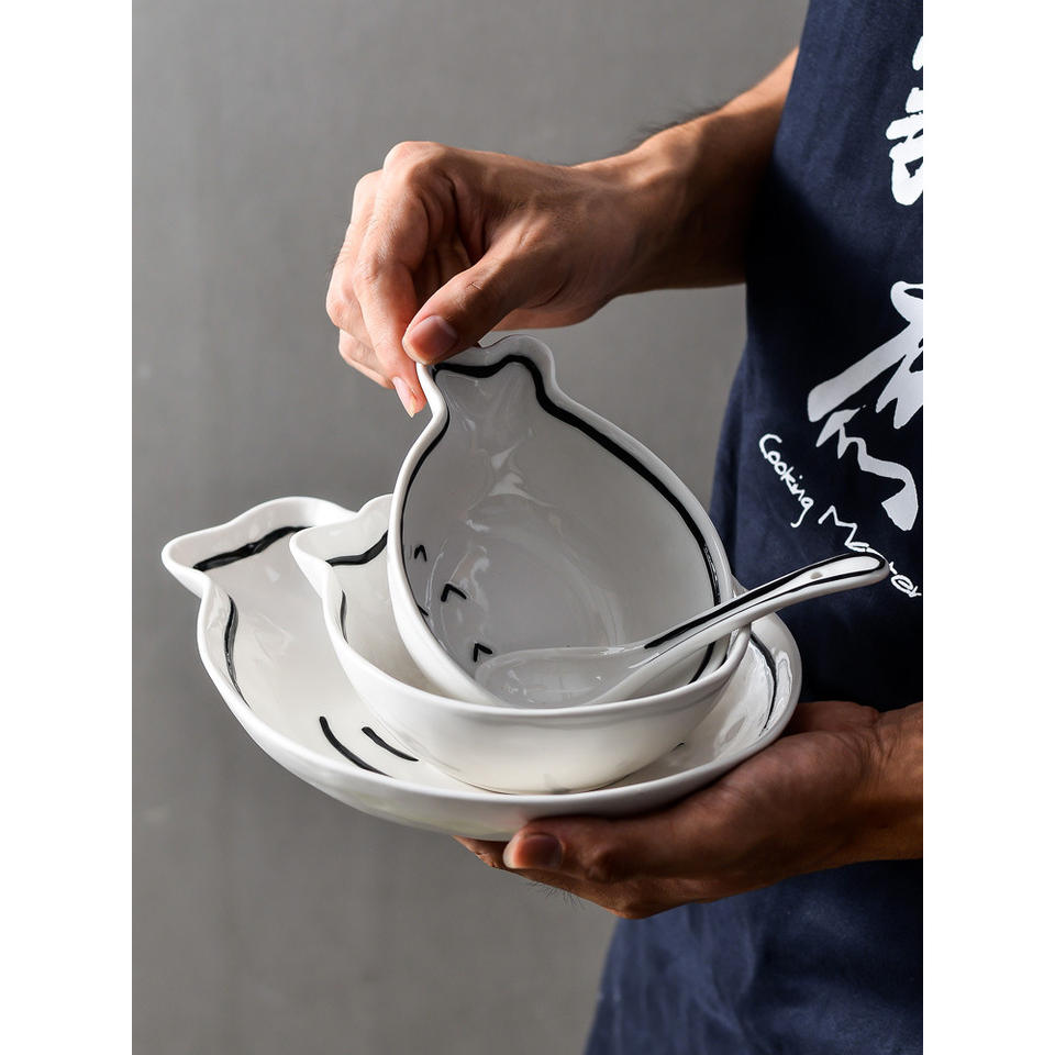 ชุดชามเซรามิคลายการ์ตูนแมวน่ารักและปลา สำหรับใส่สลัด ผลไม้ ผัก เหมาะสำหรับเป็นของขวัญ