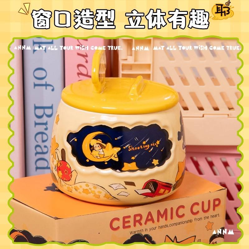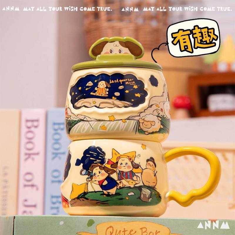 แก้วเซรามิคลายการ์ตูนน่ารัก มีฝาและหูจับ แก้วเดี่ยวสำหรับใช้ในบ้าน ของขวัญฤดูหนาว 2025