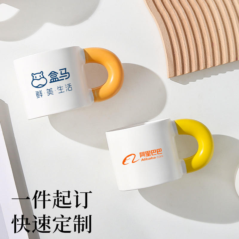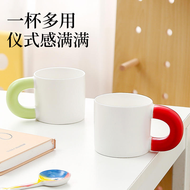 แก้วเซรามิคลายการ์ตูนน่ารัก พร้อมหูจับอ้วนสีสันตัดกัน ขนาด 301-400 มล. ลายพิมพ์สกรีน สำหรับใช้งานทั่วไป