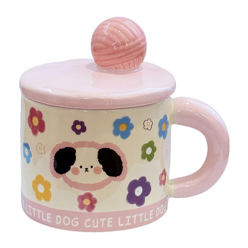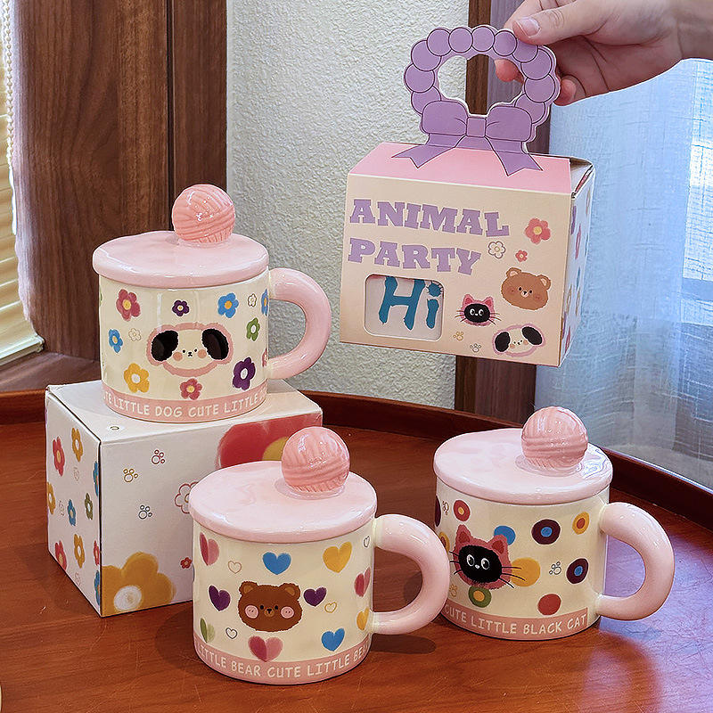 แก้วเซรามิคลายการ์ตูนน่ารัก มีฝาและหูจับ สำหรับสาวๆ ของขวัญสำนักงาน แก้วเดี่ยว ซัมเมอร์ 2025