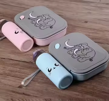 ชุดกล่องข้าวพลาสติกสำหรับเด็กนักเรียนลายช้างการ์ตูนน่ารักชุดขวดน้ำ