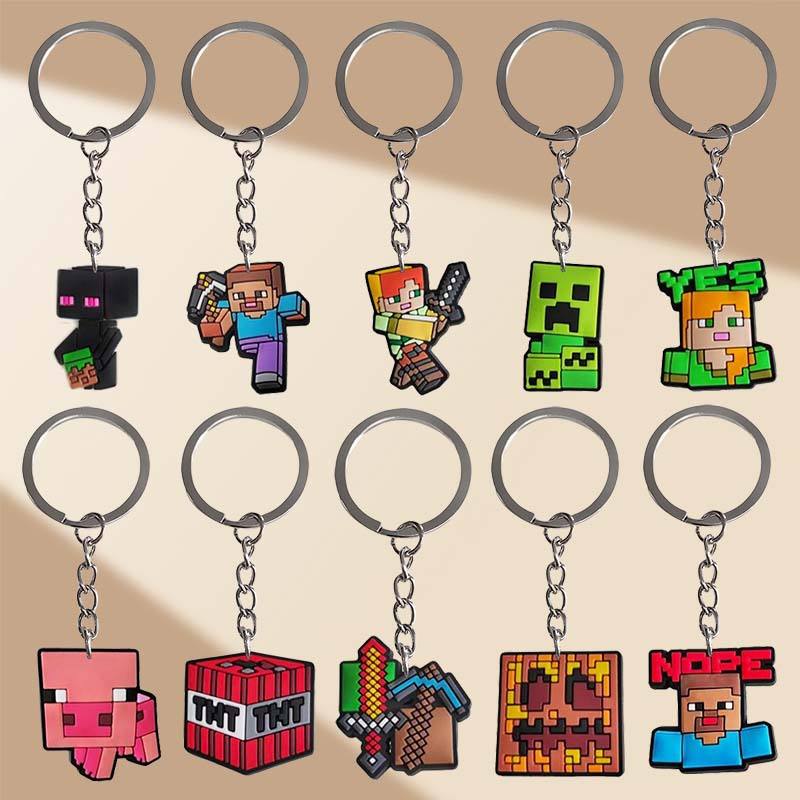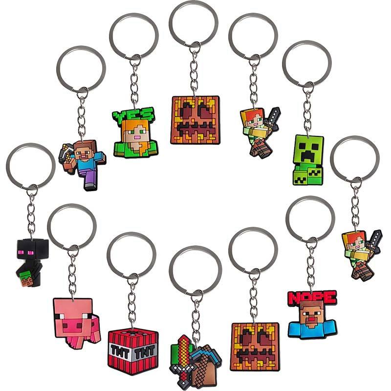 ตัวการ์ตูนน่ารักเกม minecrafts พวงกุญแจยางที่กำหนดเองจี้กระเป๋าเป้สะพายหลังของขวัญที่มีพวงกุญแจนุ่มออกแบบและโลโก้