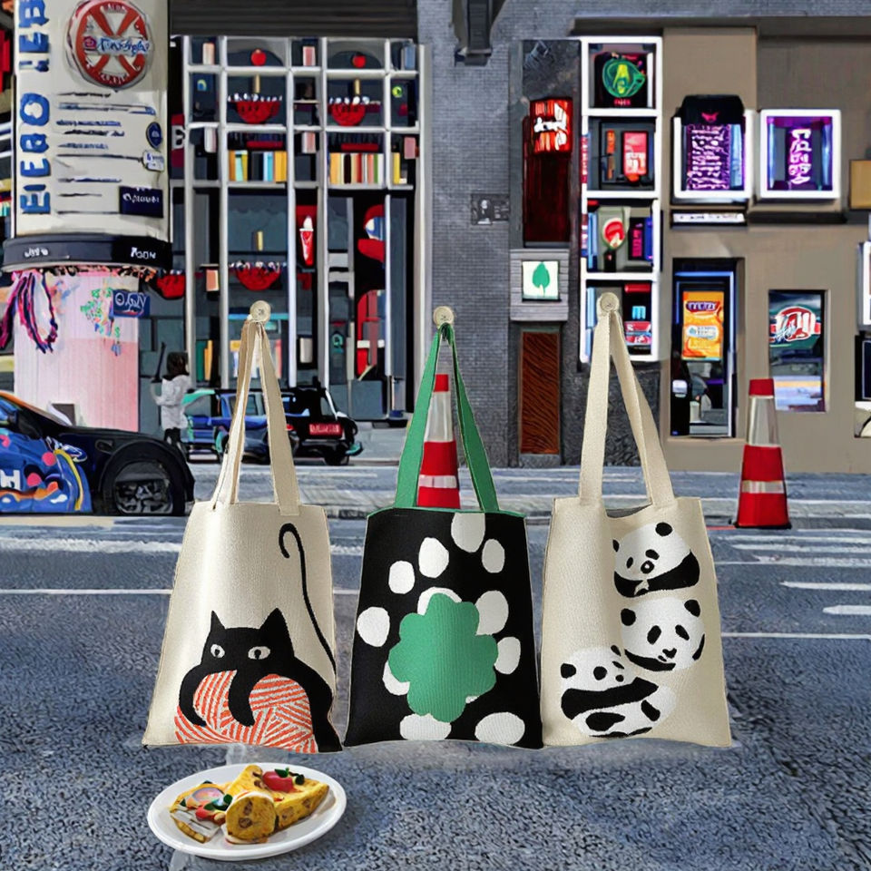 กระเป๋าถือสะพายไหล่ลายการ์ตูนแพนด้าน่ารัก ผ้าโพลีเอสเตอร์ถักโครเชต์ สำหรับผู้หญิง