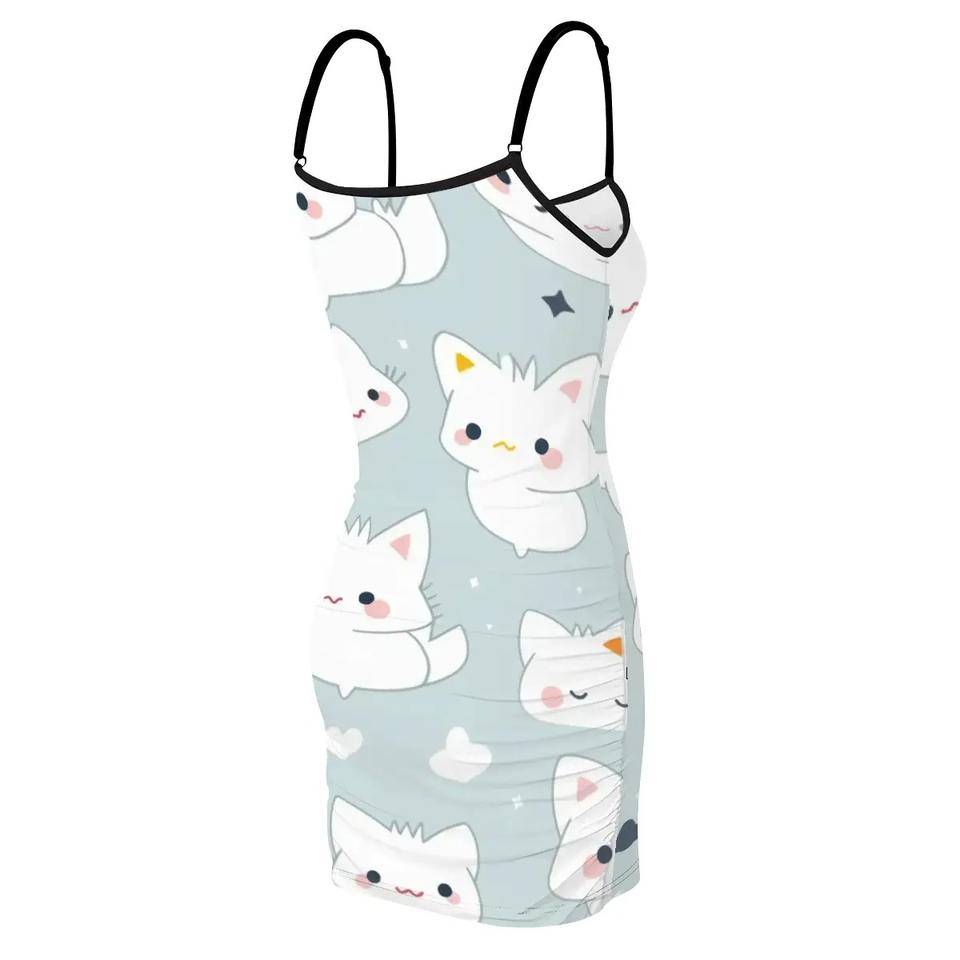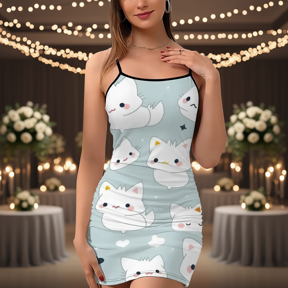 ชุดเดรสราตรีรัดรูปลายการ์ตูนน่ารักสำหรับผู้หญิง สายเดี่ยวเหนือเข่า ระบายอากาศได้ดี เหมาะสำหรับงานปาร์ตี้ฤดูร้อน