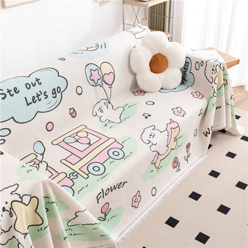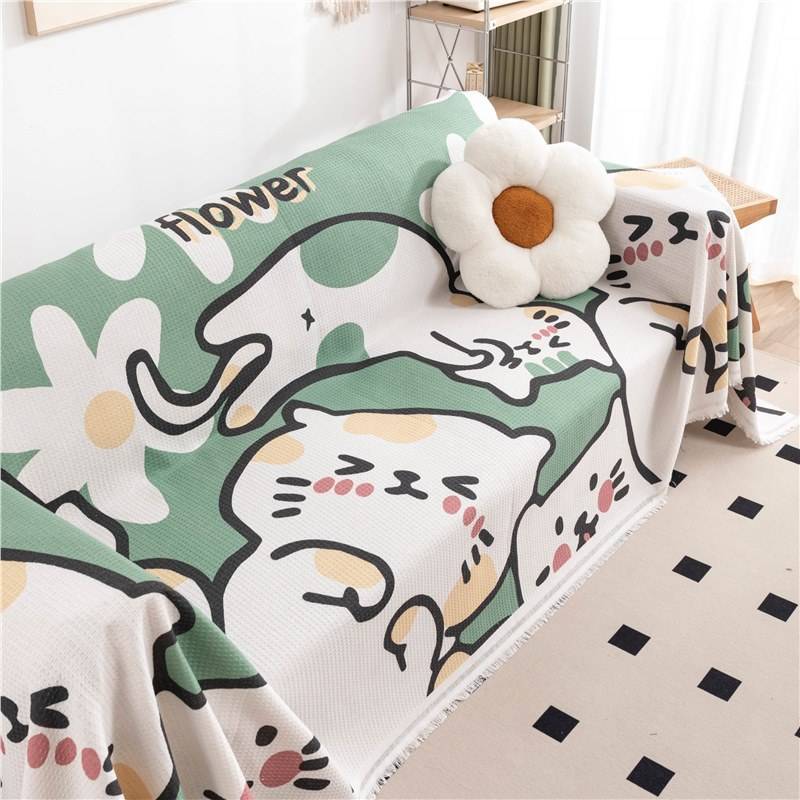 ผ้าคลุมโซฟาการ์ตูนน่ารัก ผ้าเชนิลล์ ป้องกันฝุ่น ลื่นยาก แบบพิมพ์ลาย ซักเครื่องได้ ใช้ได้ทุกฤดู