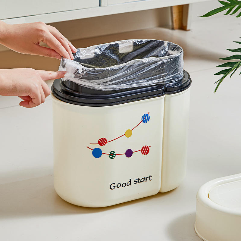 ถังขยะลายการ์ตูนน่ารัก รูปทรงตัว D ฝาปิดแบบ Snap On ป้องกันกลิ่น สำหรับใช้ในบ้าน ห้องครัว ห้องน้ำ น้ำหนัก 700 กรัม รุ่น LJT03