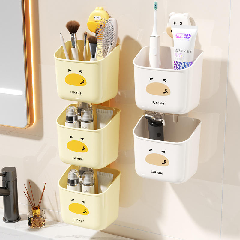 ตะกร้าเก็บของติดผนังลายการ์ตูนน่ารัก พร้อมถ้วยดูดสุญญากาศ ไม่ต้องเจาะผนัง ใช้จัดระเบียบห้องน้ำ สำหรับแปรงสีฟัน เครื่องสำอาง หอพักนักเรียน