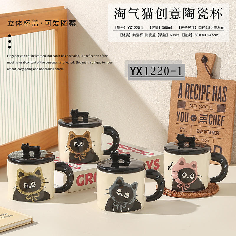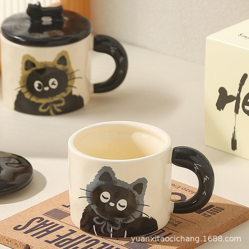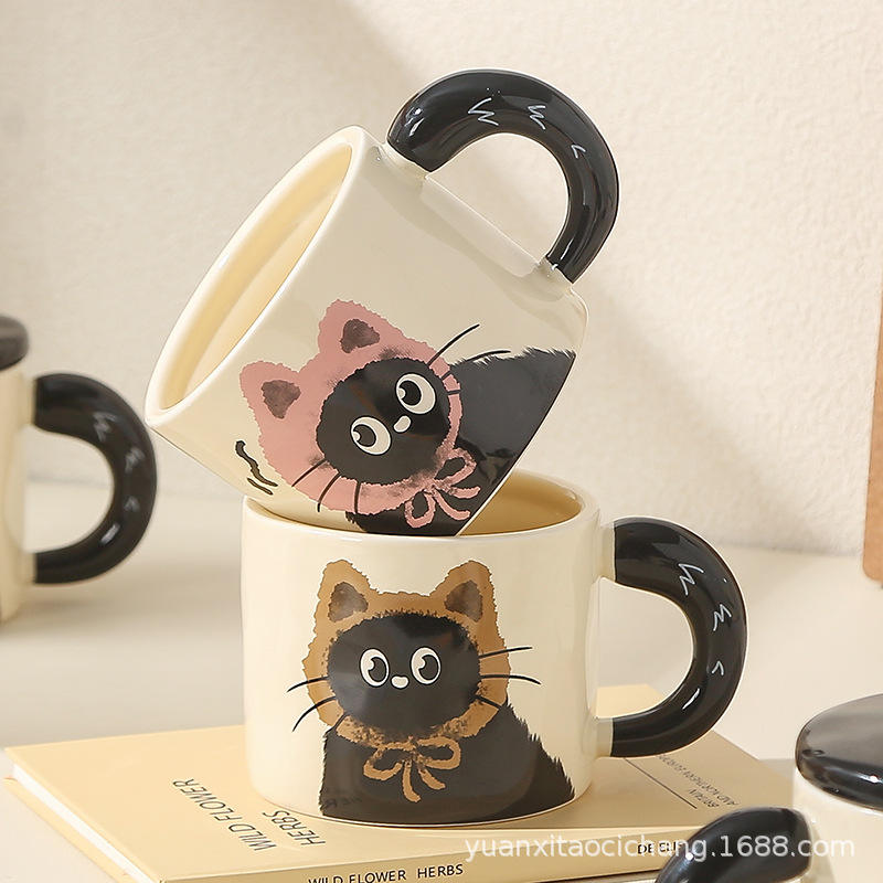 แก้วเซรามิคลายแมวน่ารักพร้อมฝาปิด 360 มล. ทนความร้อน แก้วกาแฟสำหรับสำนักงาน ใช้ในบ้าน ของขวัญสำหรับมื้อเช้า ฤดูใบไม้ผลิ 2024