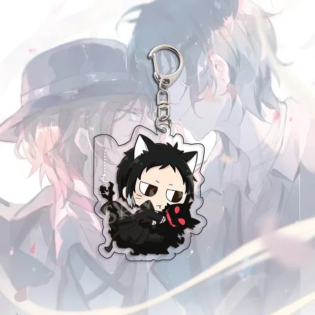 พวงกุญแจอะคริลิคสองด้านลายการ์ตูนธีมแมวน่ารักจากอนิเมะ Bungou Stray Dogs ตัวละครดาไซ โอซามุ และนาคากะระ ชูยะ ของขวัญคริสต์มาส