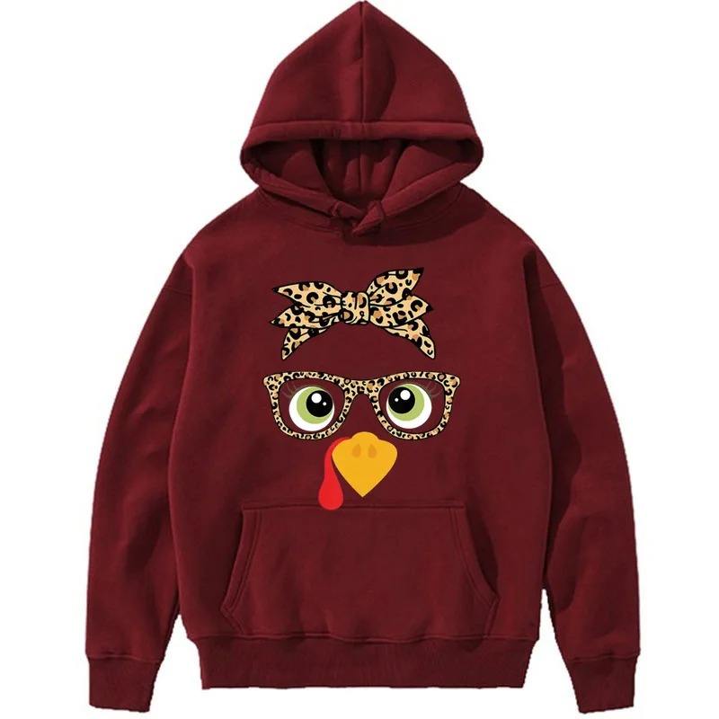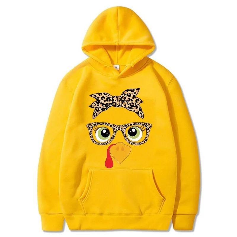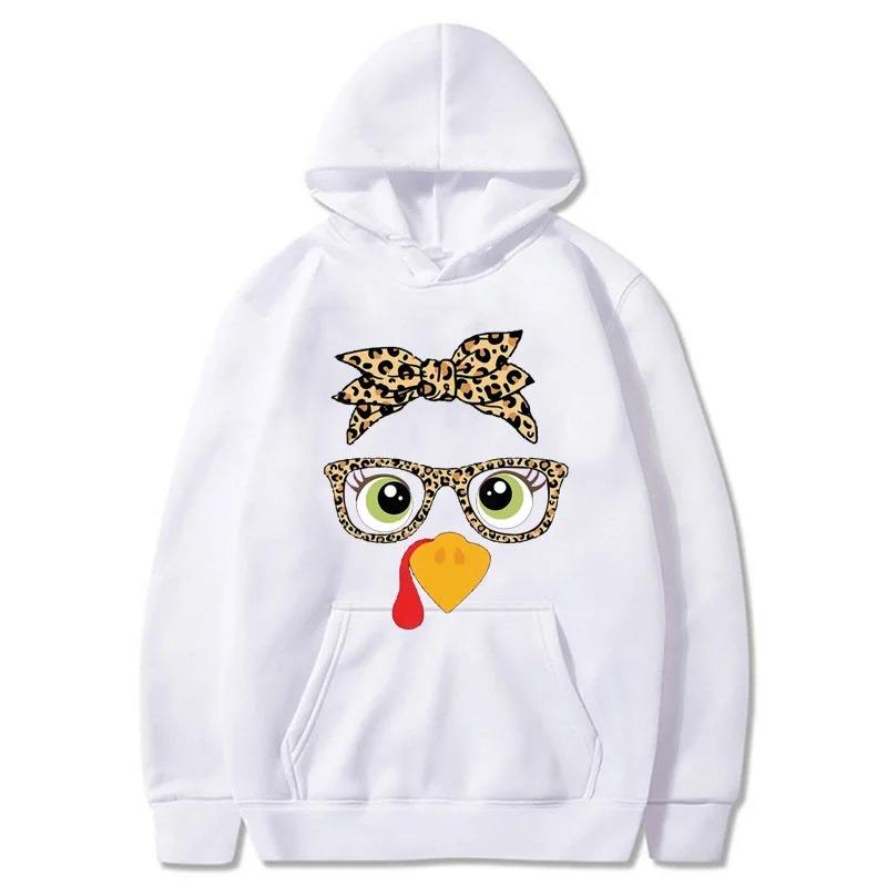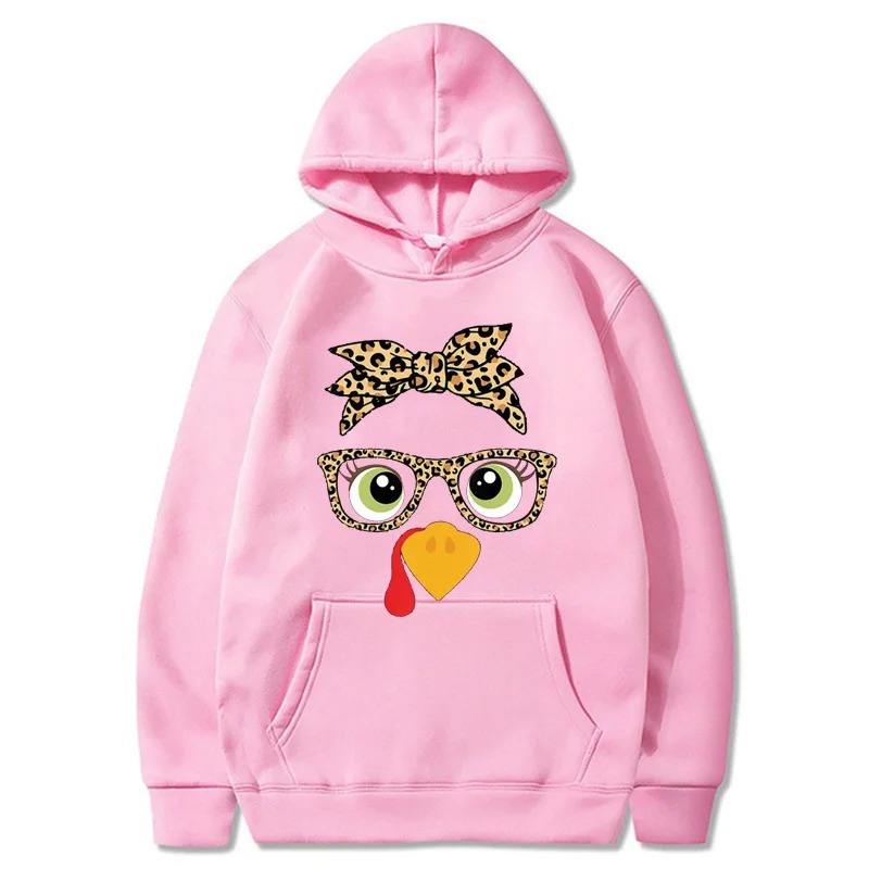 เสื้อกันหนาวแบบสวมหัวมีฮู้ดไก่น่ารักสำหรับผู้หญิงเสื้อมีฮู้ดลำลองลายการ์ตูนกราฟิกฤดูใบไม้ร่วงฤดูหนาว