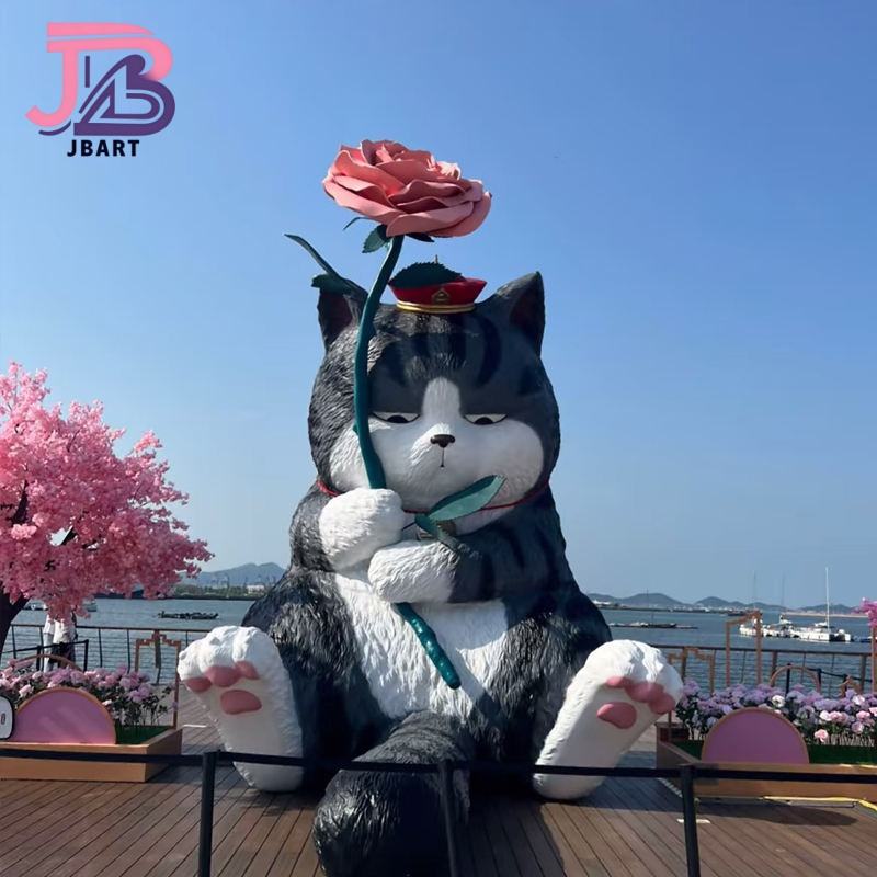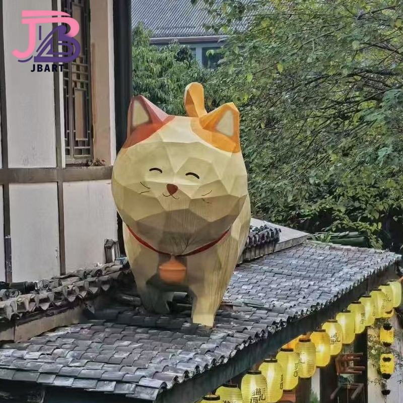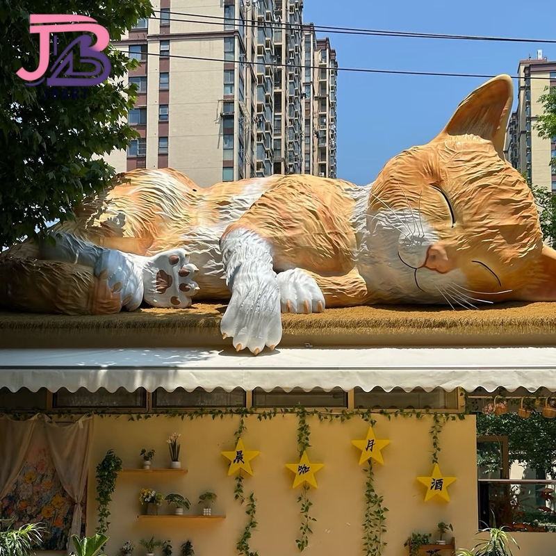 รูปปั้นแมวส้มน่ารักทำจากแก้วพลาสติกเสริมความแข็งแรงสไตล์การ์ตูนสำหรับสัตว์เลี้ยงนำโชค