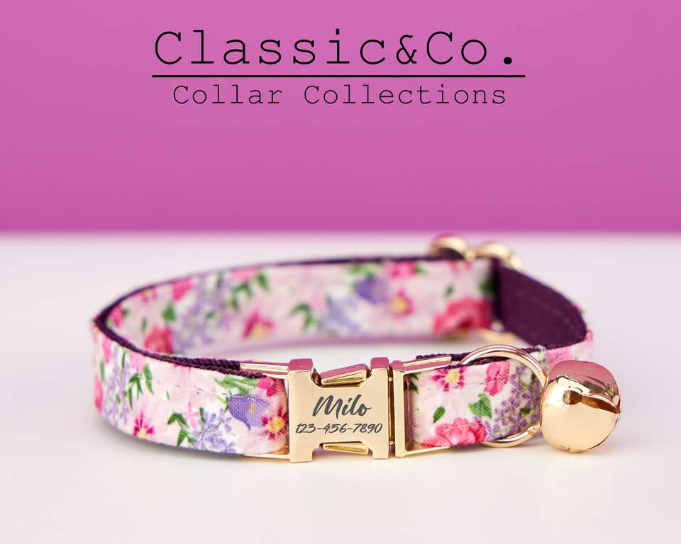 ปลอกคอแมวลายดอกไม้สีสันน่ารักสำหรับสัตว์เลี้ยงเพศชายเพศหญิงปลอกคอลูกแมวนุ่มสบายพร้อมกระดิ่งและหัวเข็มขัดสีทองไอเดียของขวัญสำหรับสัตว์เลี้ยง