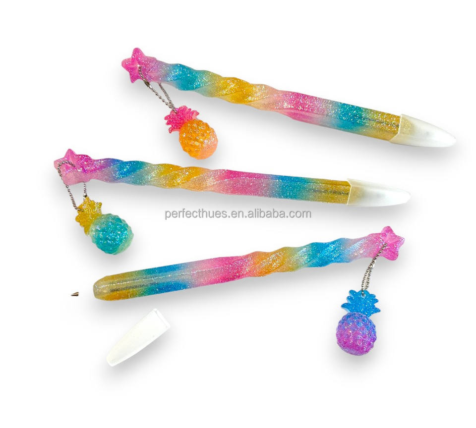 คำอธิบาย:บาร์เรลปากกาบิดสีฝันกับสับปะรดที่มีเสน่ห์แขวน