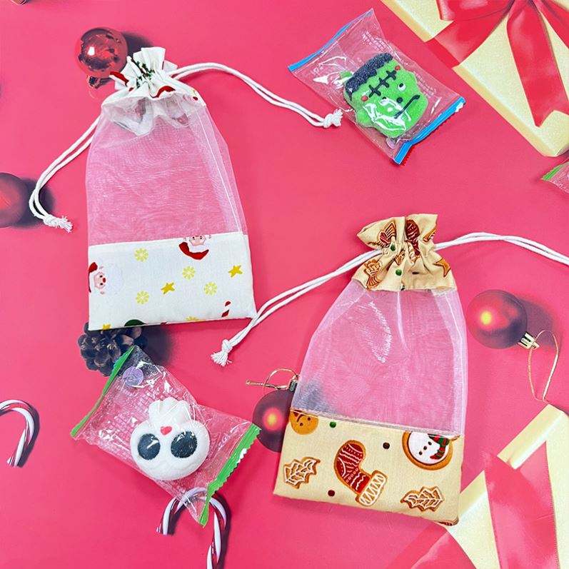 Cute Cotton Organza Drawstring Pouch for Holiday Christmas Party Durable Gift Packaging Material