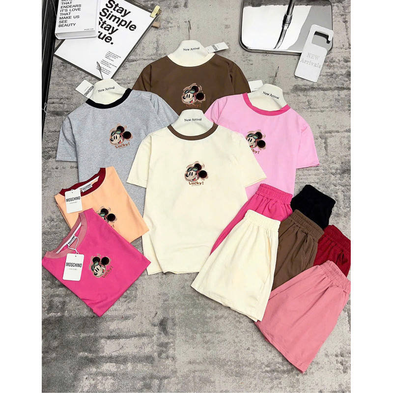ชุดสองชิ้นเหนือเข่าผ้าฝ้ายน่ารักของผู้หญิงชุดกางเกงขาสั้นเหนือเข่าชุดในไซส์ XXS และ XS มีสไตล์ดีไซน์เครื่องแต่งกาย2ชิ้น