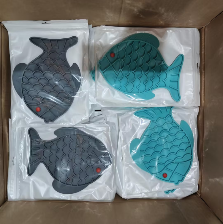 แผ่นรองสำหรับสุนัขรูปปลาปลาโลมาน่ารักทำความสะอาดง่ายแผ่นรองเลียสำหรับสัตว์เลี้ยงพร้อมถ้วยดูด