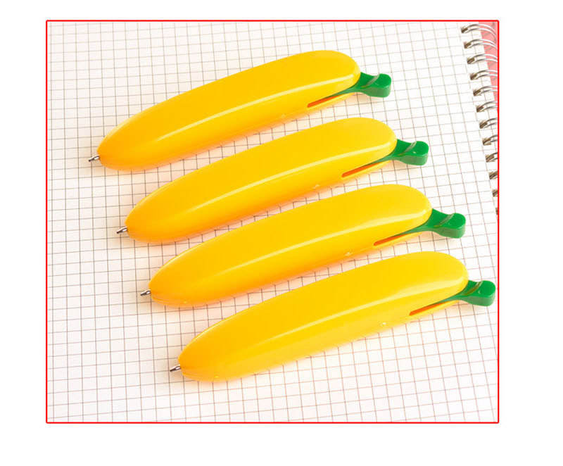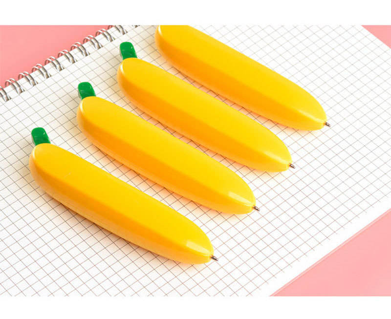 Cute Creative Banana Shaped Ballpoint Pen 0.5 mm Plastic Bullet Head Signature Pen with Atomic Brush Question Neutral Color
