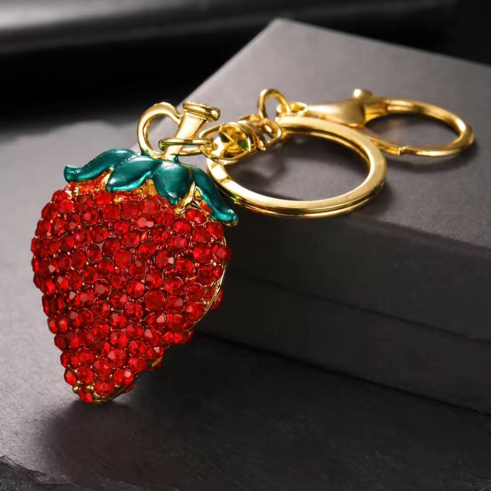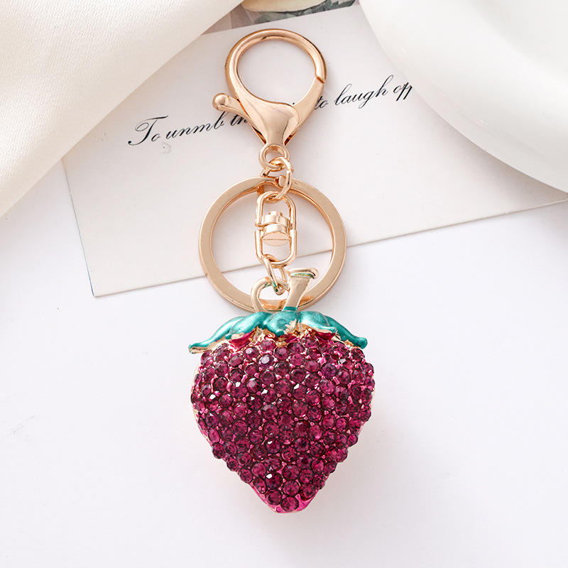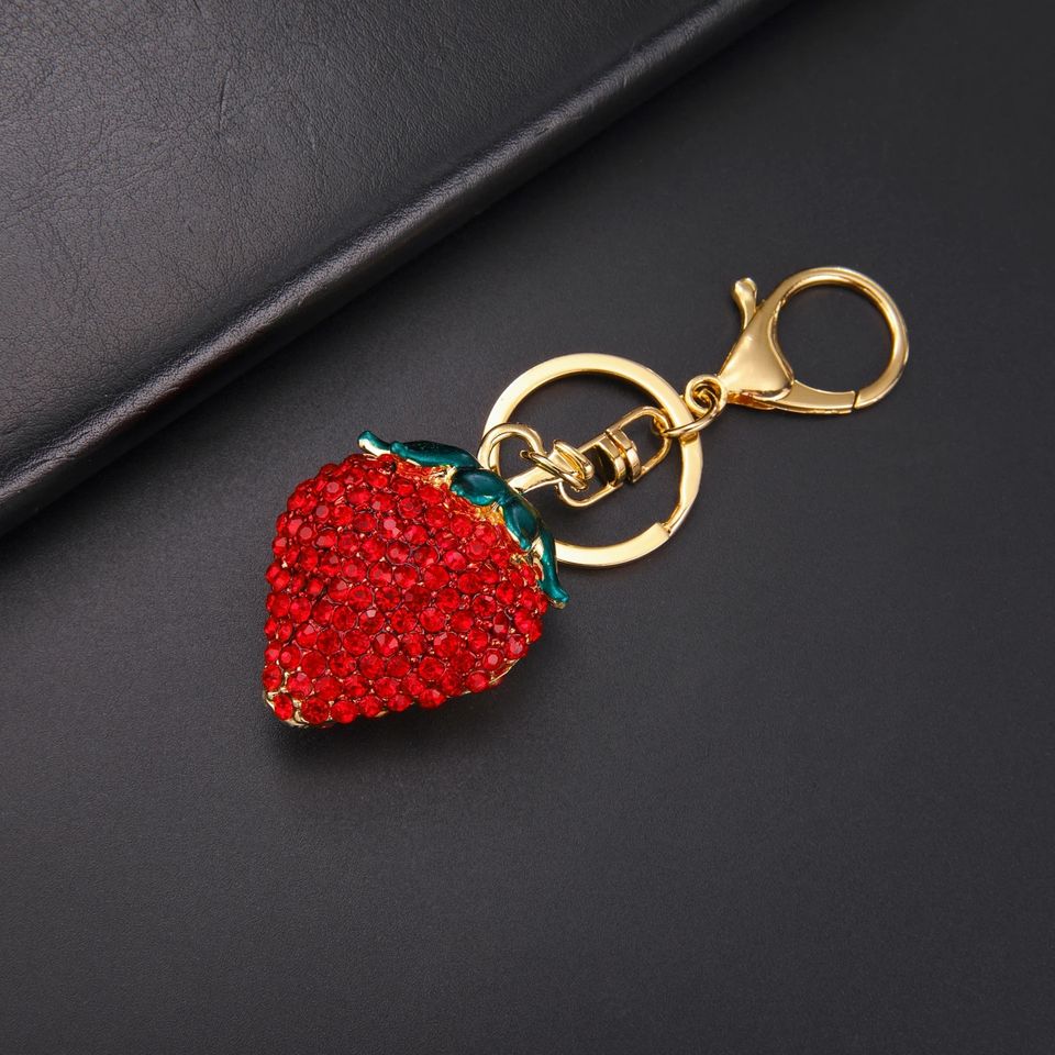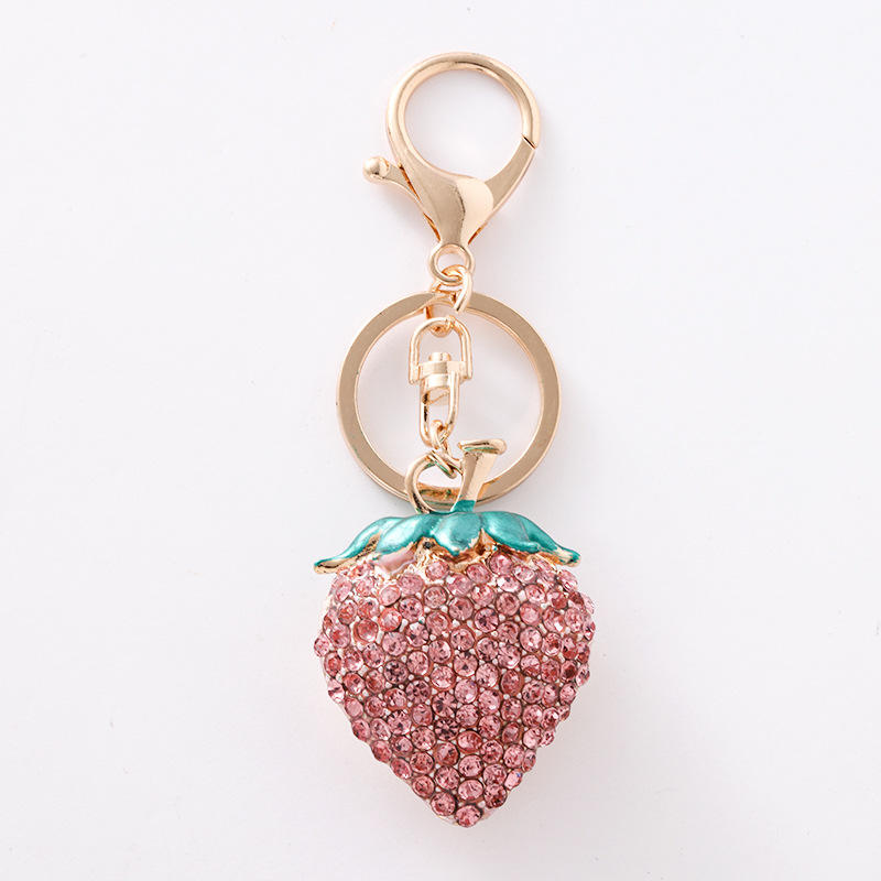 พวงกุญแจจี้คริสตัลรูปสตรอว์เบอร์รี่น่ารัก วัสดุอัลลอยด์ สำหรับผู้หญิงและเด็กผู้หญิง สไตล์คาวาอี้ ของขวัญเครื่องประดับแฟชั่นผลไม้ ขายส่ง