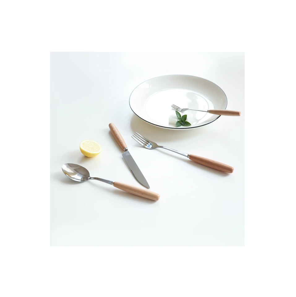 ชุดของขวัญช้อนเหล็กด้ามไม้ดีไซน์น่ารักชุดของขวัญช้อนกาแฟและส้อมขนมหวานในราคาที่แข่งขันได้