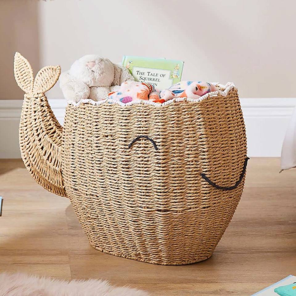 ตะกร้าสานรูปปลาวาฬน่ารักสำหรับเด็ก ตกแต่งห้องเด็กและห้องทารก ตะกร้ารูปสัตว์ ทำด้วยมือในเวียดนาม