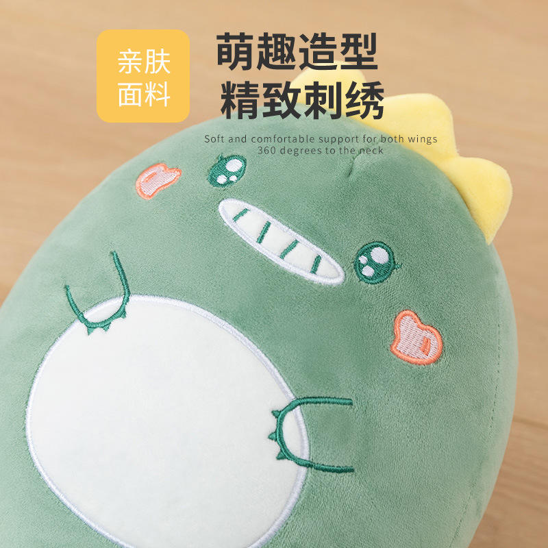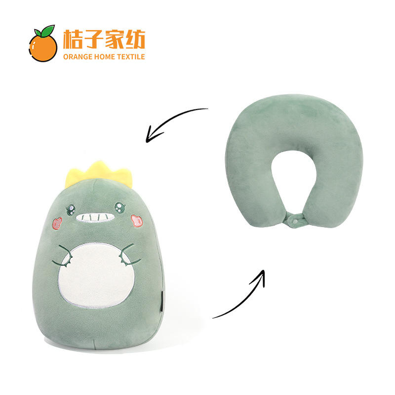 หมอนรองคอรูปไดโนเสาร์น่ารัก 28x26x14 ซม. หมอนเดินทางแบบพับได้สำหรับผู้ใหญ่ ดีไซน์พับได้ หมอนกำมะหยี่สีเขียว