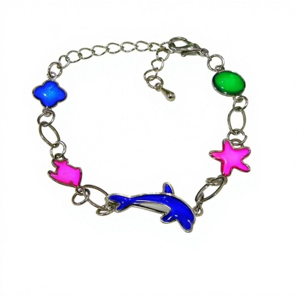 สร้อยข้อมือเด็กปรับได้รูปปลาโลมาสองด้านน่ารัก วัสดุโลหะผสมสังกะสี เปลี่ยนสีได้ ของขวัญจาก Philcha