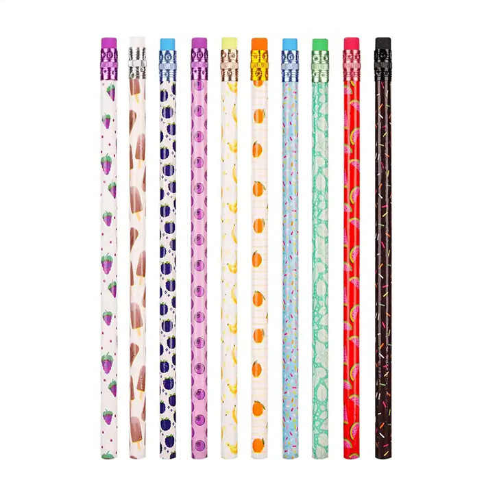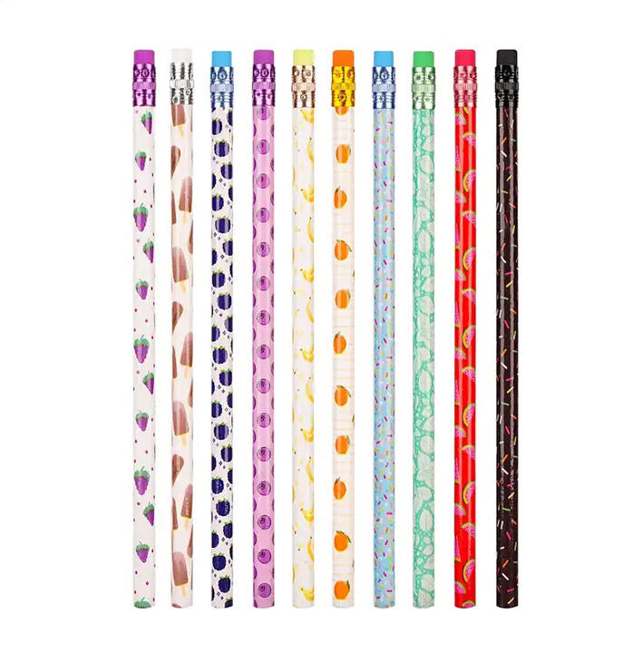 น่ารักวาดกราไฟท์ตะกั่วมาตรฐาน HB 2B ดินสอส่งเสริมการขายจํานวนมากดินสอที่กําหนดเองพร้อมยางลบ