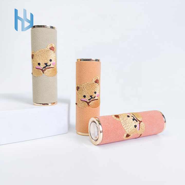 หลอดลิปสติกลิปบาล์มแบบแท่งพลาสติกขนาด12.1มม. ปักลายหมีน่ารัก