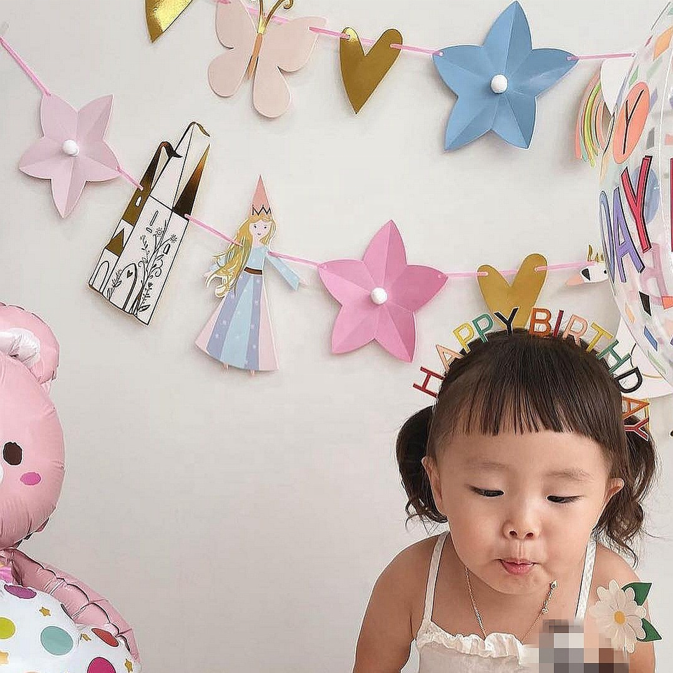 ของตกแต่งงานวันเกิดธีมนางฟ้าน่ารัก ป้ายสุขสันต์วันเกิดสีสันสดใสสำหรับเด็กผู้หญิง สีฟ้าและสีชมพู ทนทานสำหรับใช้ภายในอาคาร
