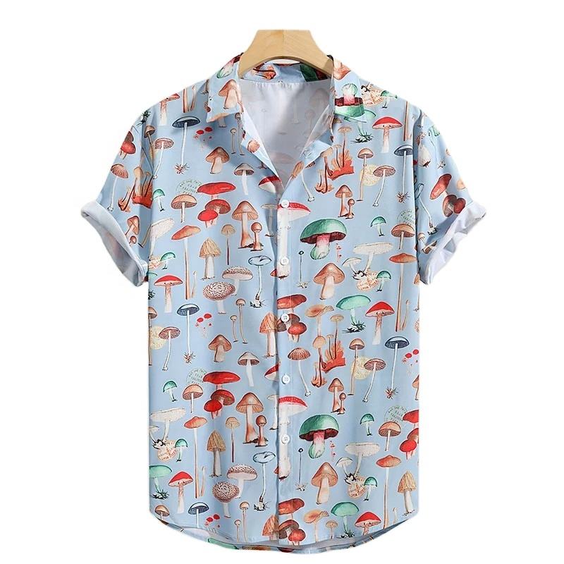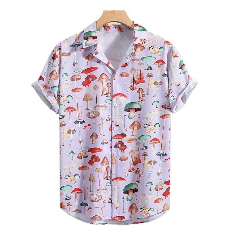 เสื้อพิมพ์ลาย3D เห็ดแฟชั่นน่ารักสำหรับผู้ชายเสื้อลำลองติดกระดุมเสื้อแขนสั้นฤดูร้อนเท่เสื้อยืดฮาวายสำหรับทุกเพศ