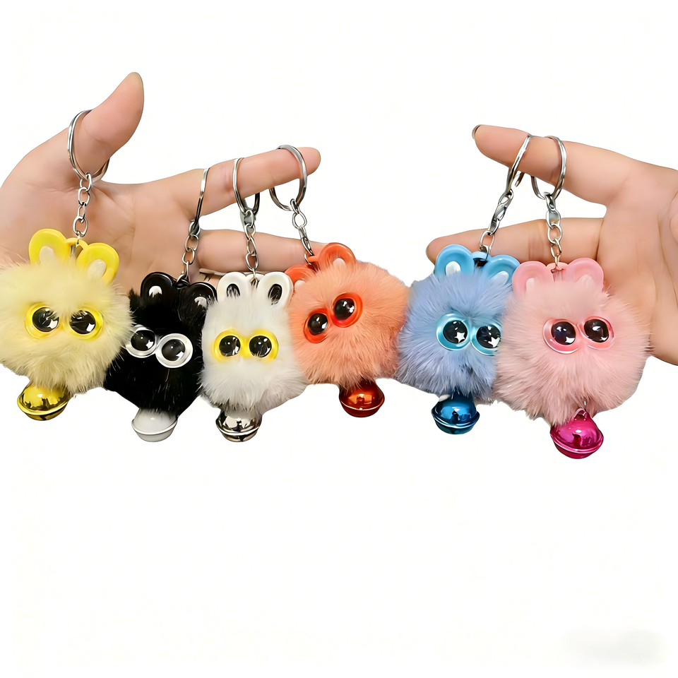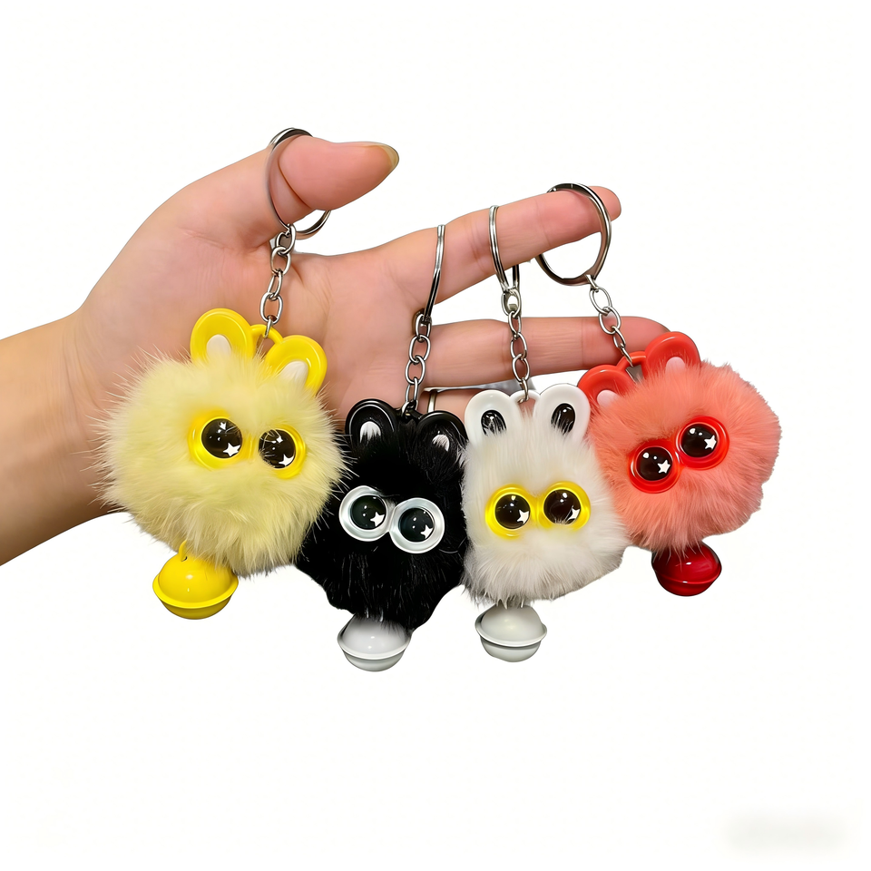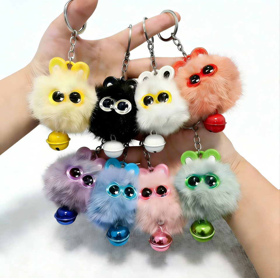 พวงกุญแจตุ๊กตาหัวแมวการ์ตูนขนเฟอร์เร็กซ์เทียมน่ารัก พร้อมพู่ปอมปอมเนื้อนุ่มฟู สำหรับกระเป๋าและกุญแจ