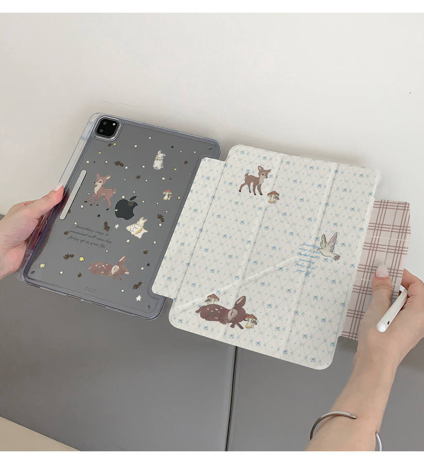 ดีไซน์ลายกวางมุนต์จาคที่น่ารักเหมาะสำหรับไอแพด 11 เจเนอเรชั่นเคสป้องกันทันสมัย Air7anti-drop Pro12.9