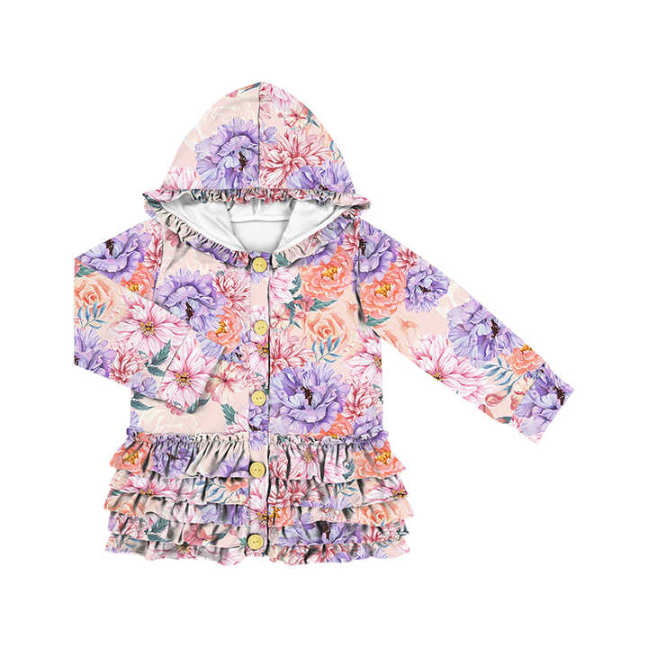 เสื้อฮู้ดลายดอกไม้น่ารักสำหรับเด็กผู้หญิง แขนยาว เสื้อแจ็คเก็ตระบายสำหรับเด็กผู้หญิง เสื้อโค้ทและเสื้อคลุมสำหรับเด็กผู้หญิง ขายส่ง