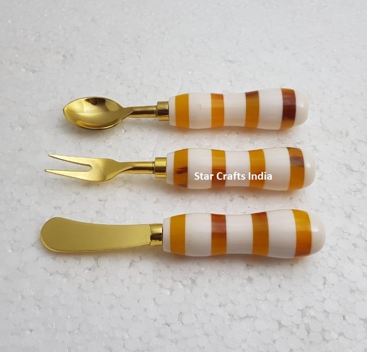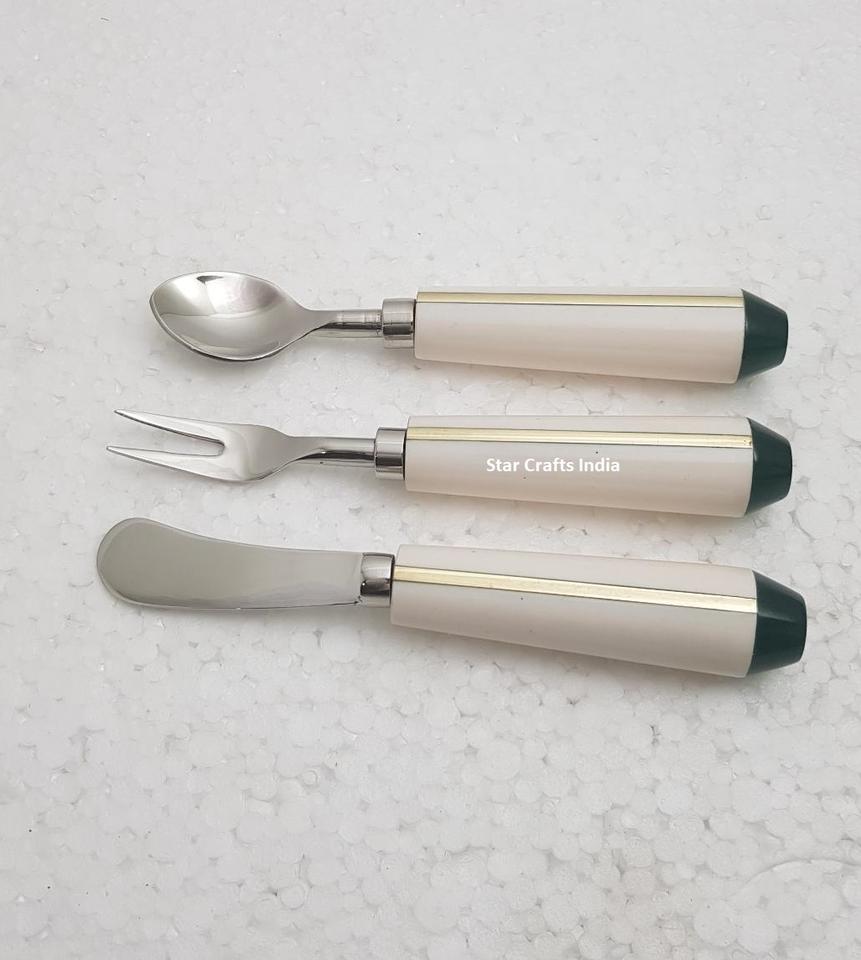 ชุดช้อนส้อมมีดรับประทานอาหารเย็น3ชิ้นชุดเครื่องใช้บนโต๊ะอาหาร18/8เกรดอาหารน่ารักทำจากเรซินและอาเกต