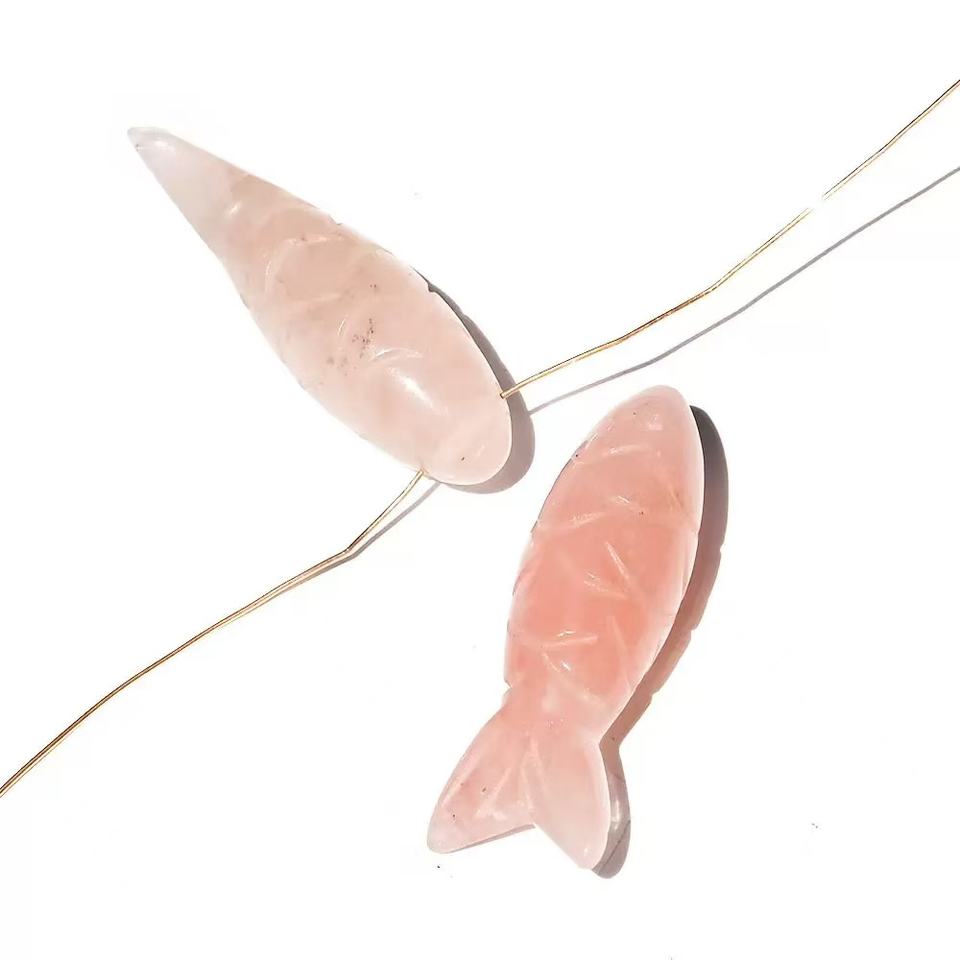 จี้แกะสลักรูปสัตว์ปลา14*38มม. น่ารักตลกพิเศษเครื่องประดับหินควอตซ์สีชมพูสำหรับสร้อยคอ
