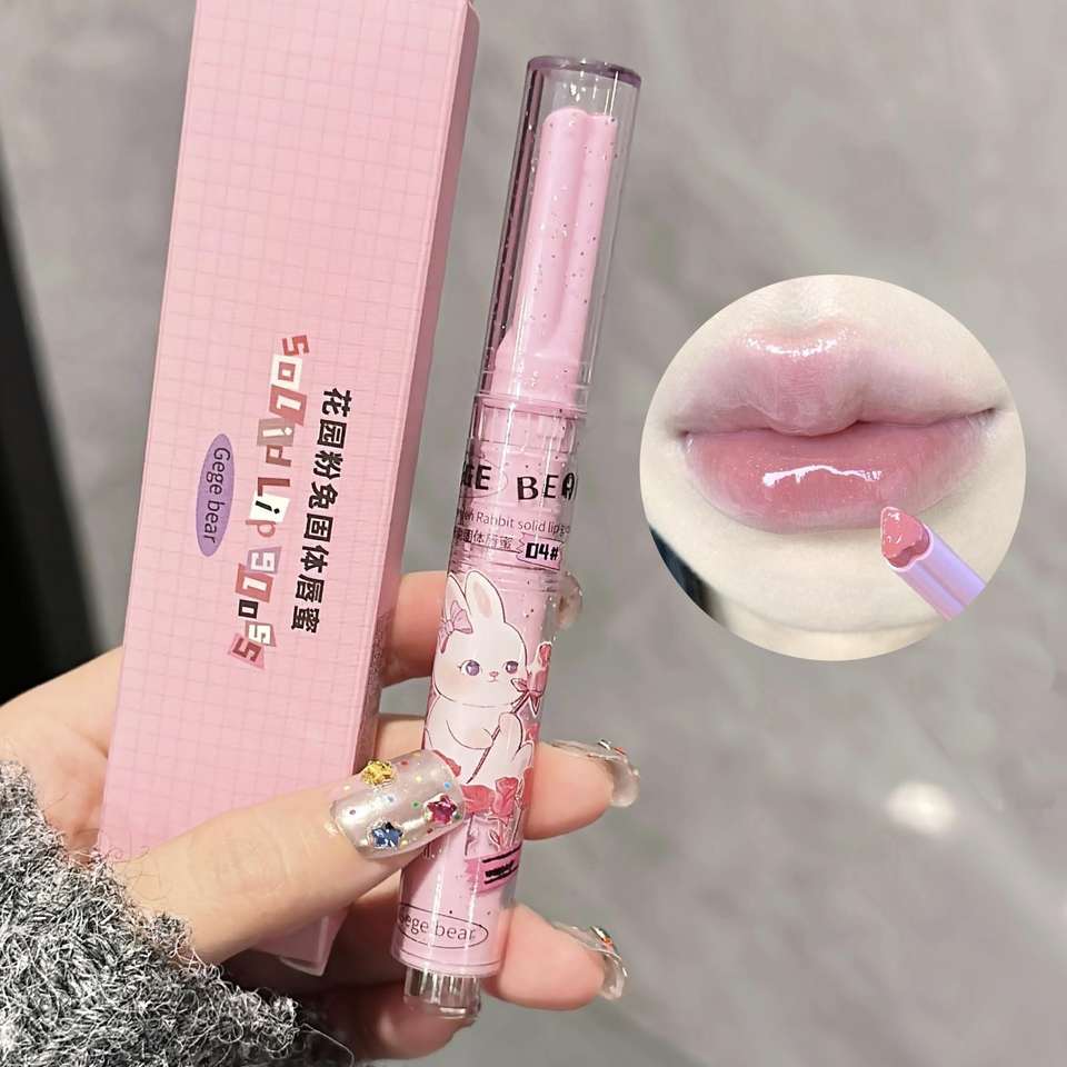 ชุดลิปมันมิเนอรัลลิปมันรูปกระต่ายในสวนน่ารักมีความชุ่มชื้นกันน้ำติดทนนานเจลลี่สำหรับกดหัวใจ
