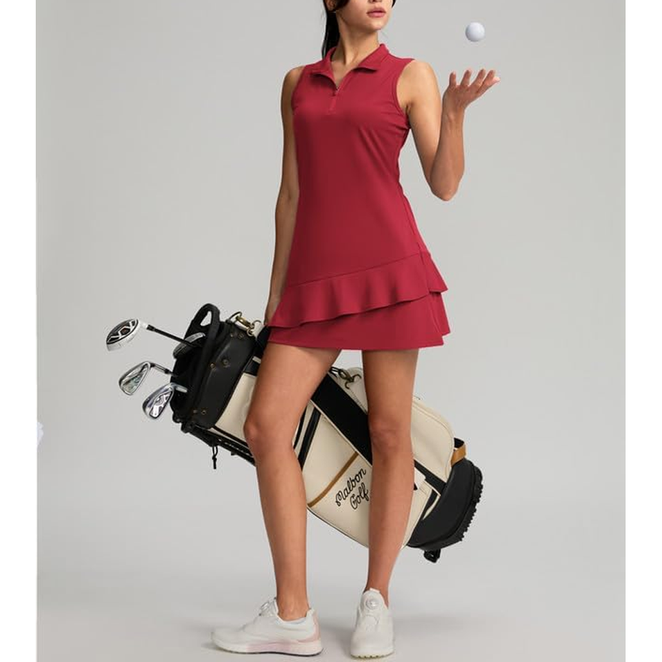 ชุดเดรสเล่นกอล์ฟสำหรับผู้หญิง, ชุดเดรสเล่นกีฬาแขนยาวปานกลางเดรสมีซับในสไตล์เกาหลี