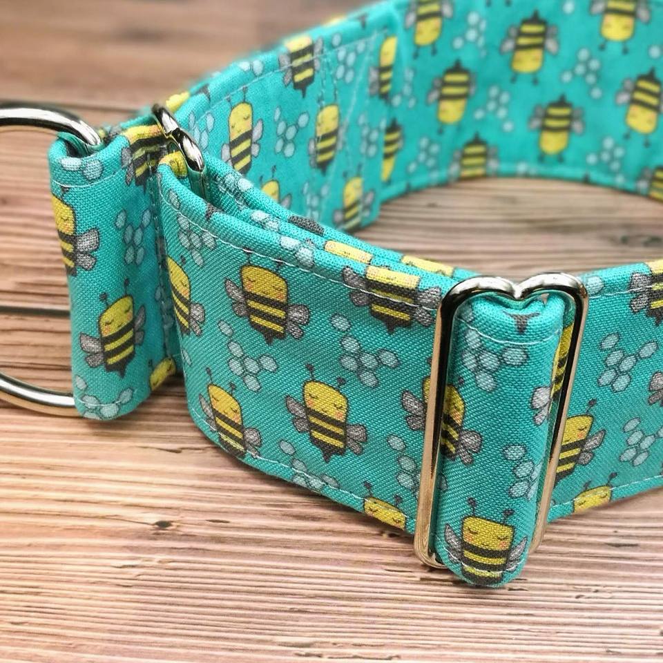 ปลอกคอสุนัขเกรย์ฮาวน์ดลายผึ้งน่ารัก พร้อมหัวเข็มขัดสีฟ้าและลายผึ้ง
