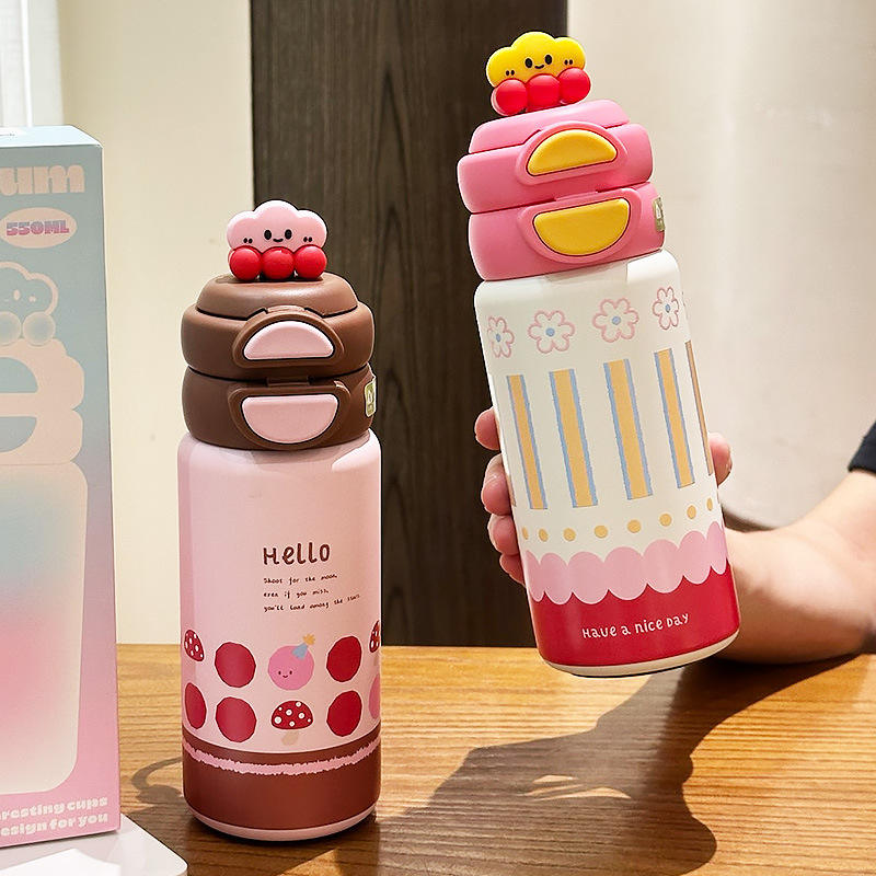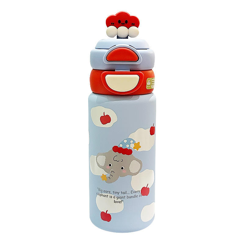ขวดน้ำเก็บอุณหภูมิลายน่ารักสำหรับเด็กผู้หญิง 550 มล. พกพาสะดวก ลายช้าง สไตล์ซัมเมอร์ 2025