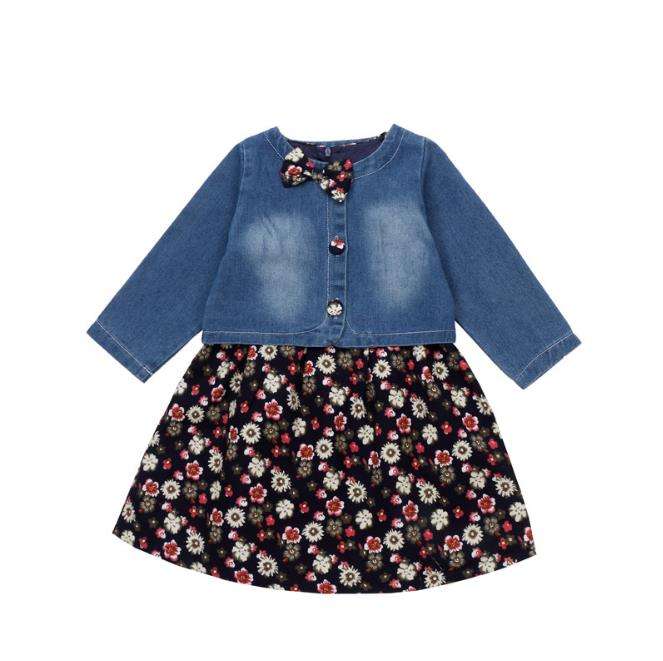 ชุดเดรสแขนกุดลายดอกไม้สไตล์คาวบอยสำหรับเด็กผู้หญิงญี่ปุ่นน่ารัก ฤดูใบไม้ผลิและฤดูร้อน ชุดสองชิ้น ขายส่ง