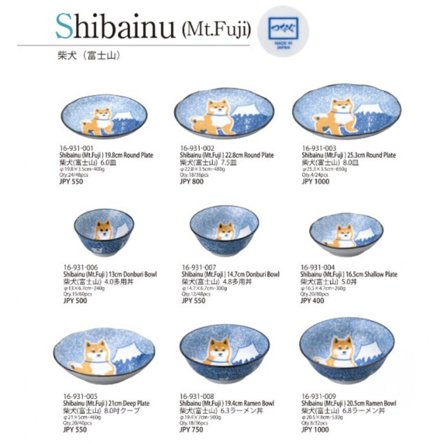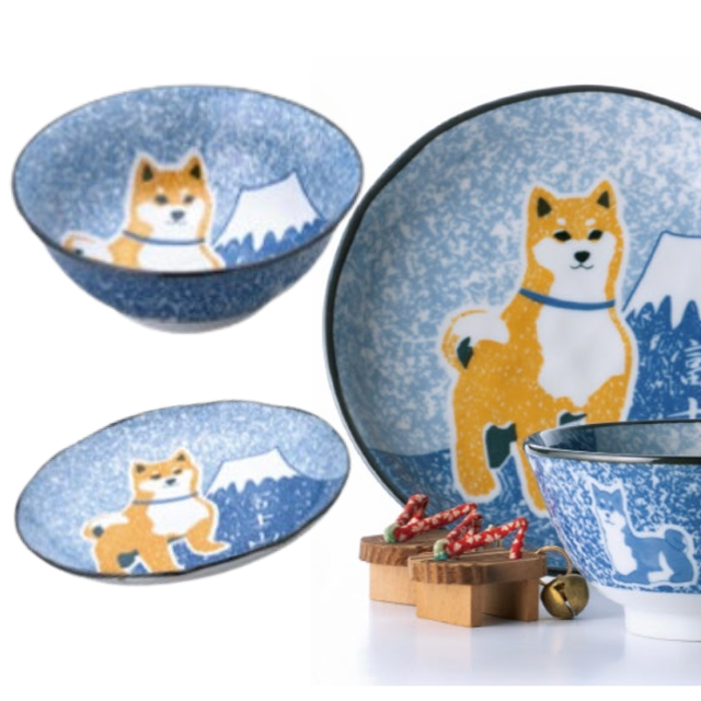 จานดีไซน์ชิบะอินุญี่ปุ่นน่ารักและจานหลากหลายขนาด