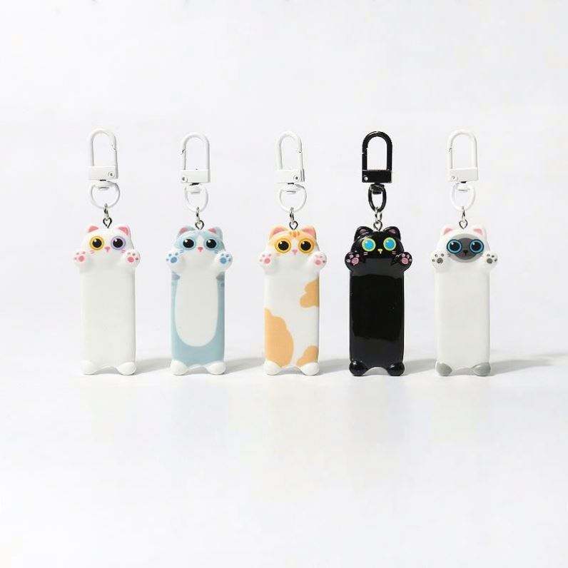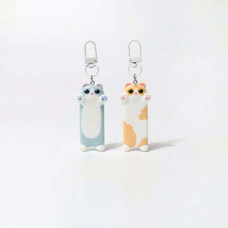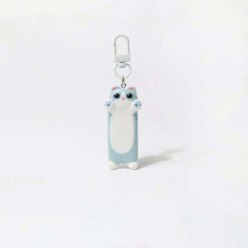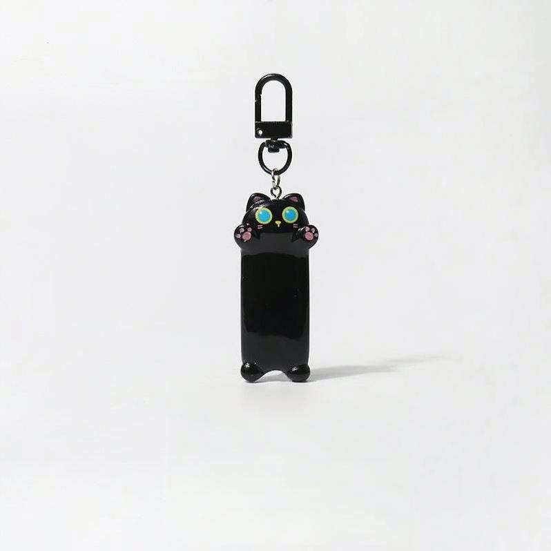 พวงกุญแจแมวน่ารักสไตล์อนิเมะ ทำจากเรซิ่น การ์ตูนแมวยาวๆ สายคล้องโทรศัพท์มือถือ พวงกุญแจยาง PVC ของตกแต่งสำหรับคู่รัก