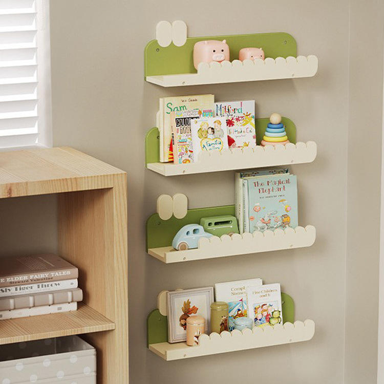 ชั้นวางหนังสือรูปแมวน่ารักติดผนัง รูปทรงสี่เหลี่ยมผืนผ้า ชั้นเก็บของสำหรับเด็ก ทำความสะอาดง่าย ชั้นวางโชว์ 4 ชั้น สำหรับห้องเด็ก