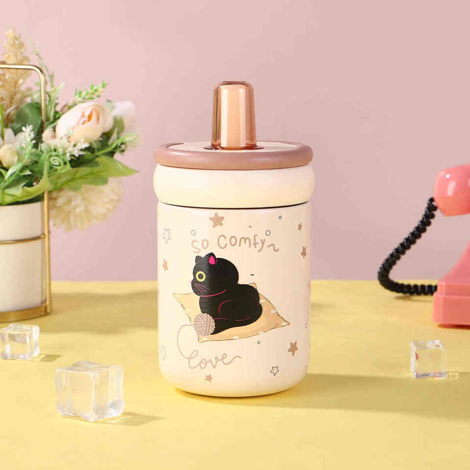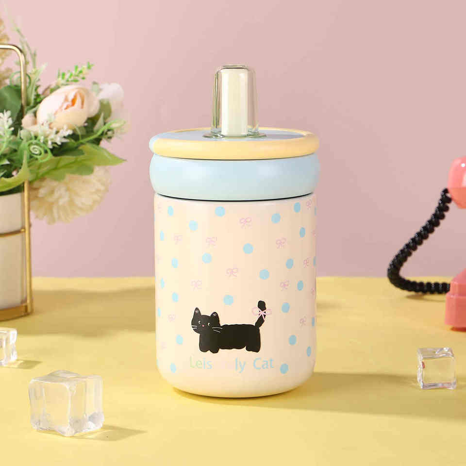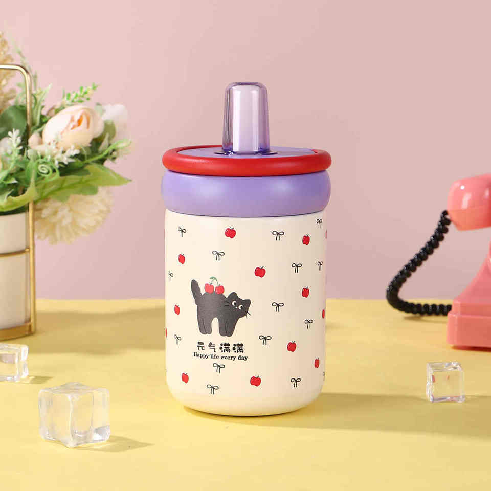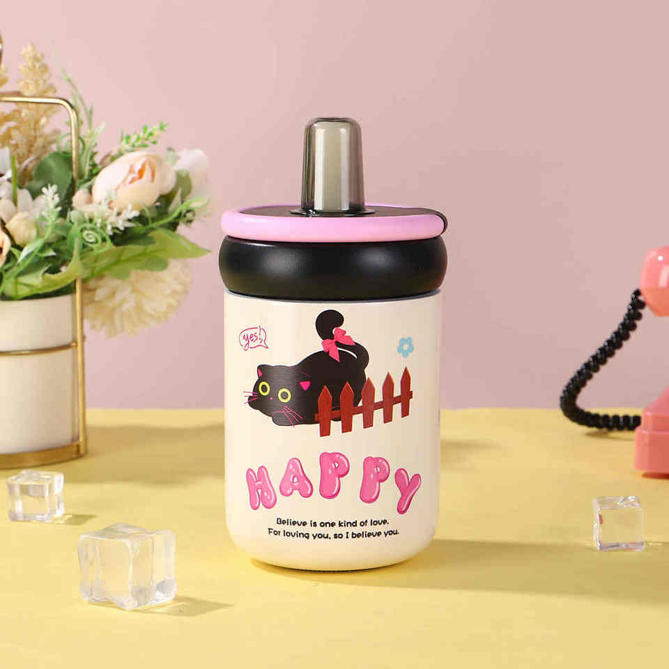 กระติกน้ำสุญญากาศสแตนเลสลายลูกแมวน่ารัก พร้อมฉนวนกันความร้อน ป้องกันการรั่วซึม ดีไซน์ทันสมัย สำหรับใช้งานกลางแจ้ง