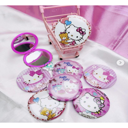 กระจกแต่งหน้าขนาดกะทัดรัดพกพาสำหรับเด็กผู้หญิงดีไซน์คิตตี้น่ารักพร้อมกล่องบรรจุภัณฑ์ขายส่ง Espejo de KITTY