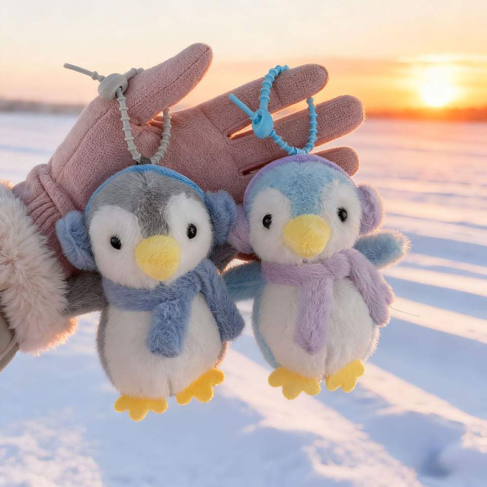 พวงกุญแจตุ๊กตาเพนกวินน้อยน่ารักพร้อมหูฟังติดตัว ขนาด 4 นิ้ว ของเล่นตุ๊กตา