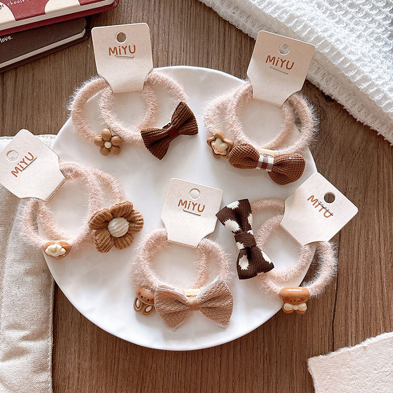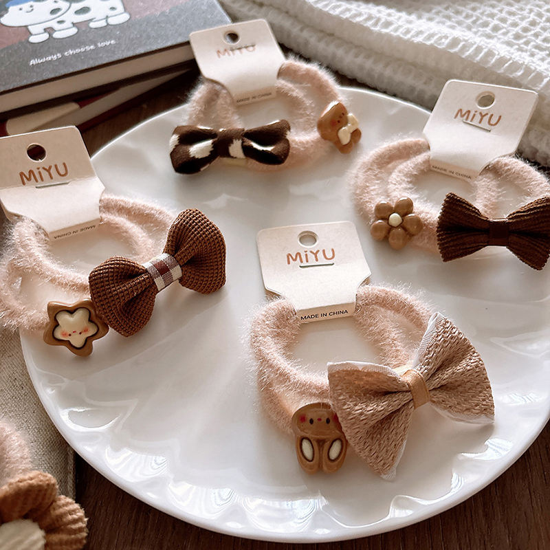 โบว์ผูกผมรูปโบว์สีนมน่ารักๆแถบยางสำหรับเด็กห่วงรัดผมบันสำหรับนักเรียนแสนหวานและเครื่องประดับผม